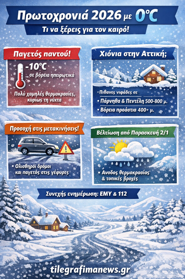 • Απαραίτητο: προσοχή στις μετακινήσεις λόγω πάγου και συνεχής ενημέρωση από Εθνική Μετεωρολογική Υπηρεσία και αξιόπιστες πλατφόρμες τώρα που «κλειδώνουν» οι λεπτομέρειες του 24ώρου.