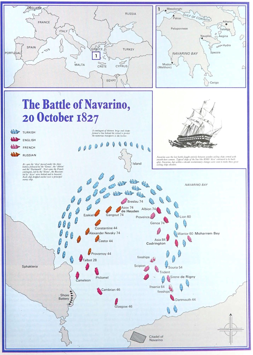 Στον κόλπο του Ναυαρίνου, οι στόλοι Βρετανίας–Γαλλίας–Ρωσίας συγκρούστηκαν με την τουρκοαιγυπτιακή αρμάδα, γράφοντας το πιο καθαρό στρατιωτικό τετελεσμένο της Επανάστασης. Από τότε, κάθε ανάγνωση της περιόδου περνά αναγκαστικά από εδώ: από τα κανόνια, τις φωτιές, τις σιωπές και τις σκληρές αποφάσεις που προηγήθηκαν.