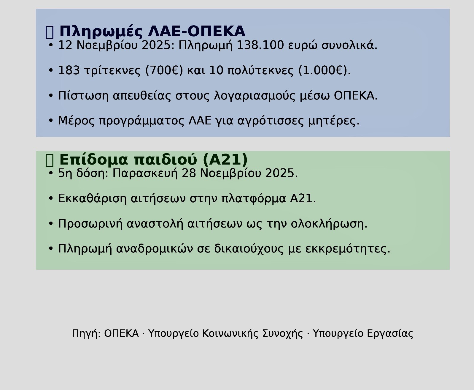 • 28 Νοεμβρίου 2025: 5η δόση επιδόματος παιδιού Α21.