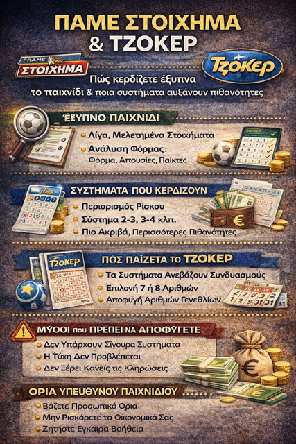Το ΠΑΜΕ ΣΤΟΙΧΗΜΑ και το ΤΖΟΚΕΡ δεν είναι τρόπος εισοδήματος. Είναι παιχνίδια ψυχαγωγίας. Όσοι κερδίζουν σε βάθος χρόνου, το κάνουν γιατί: