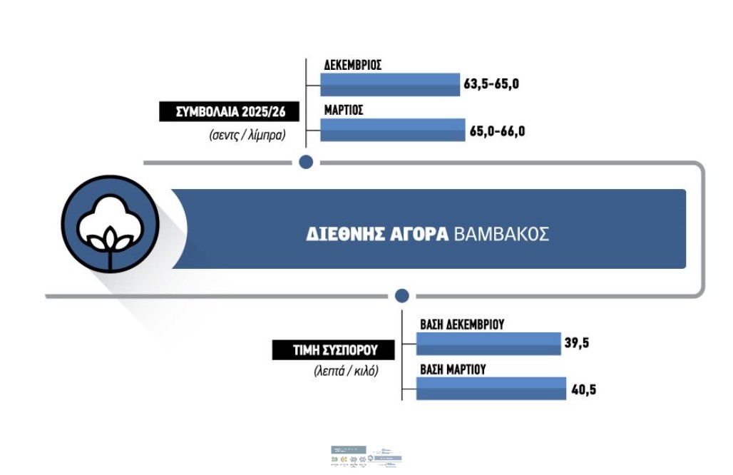 Την ίδια ώρα, στο χωράφι και στην αγορά, η εικόνα είναι σαφώς πιο σκοτεινή. Η τιμή του σύσπορου βαμβακιού έχει υποχωρήσει στα 39–39,5 λεπτά το κιλό, επίπεδα που θεωρούνται οριακά – αν όχι ζημιογόνα – για τη βιωσιμότητα της καλλιέργειας. Η πτώση συνδέεται άμεσα με τη διεθνή αγορά, όπου το εκκοκκισμένο βαμβάκι κινείται στα 63–64 σεντς ανά λίμπρα, σε συνδυασμό με το εξαιρετικά αδύναμο δολάριο.