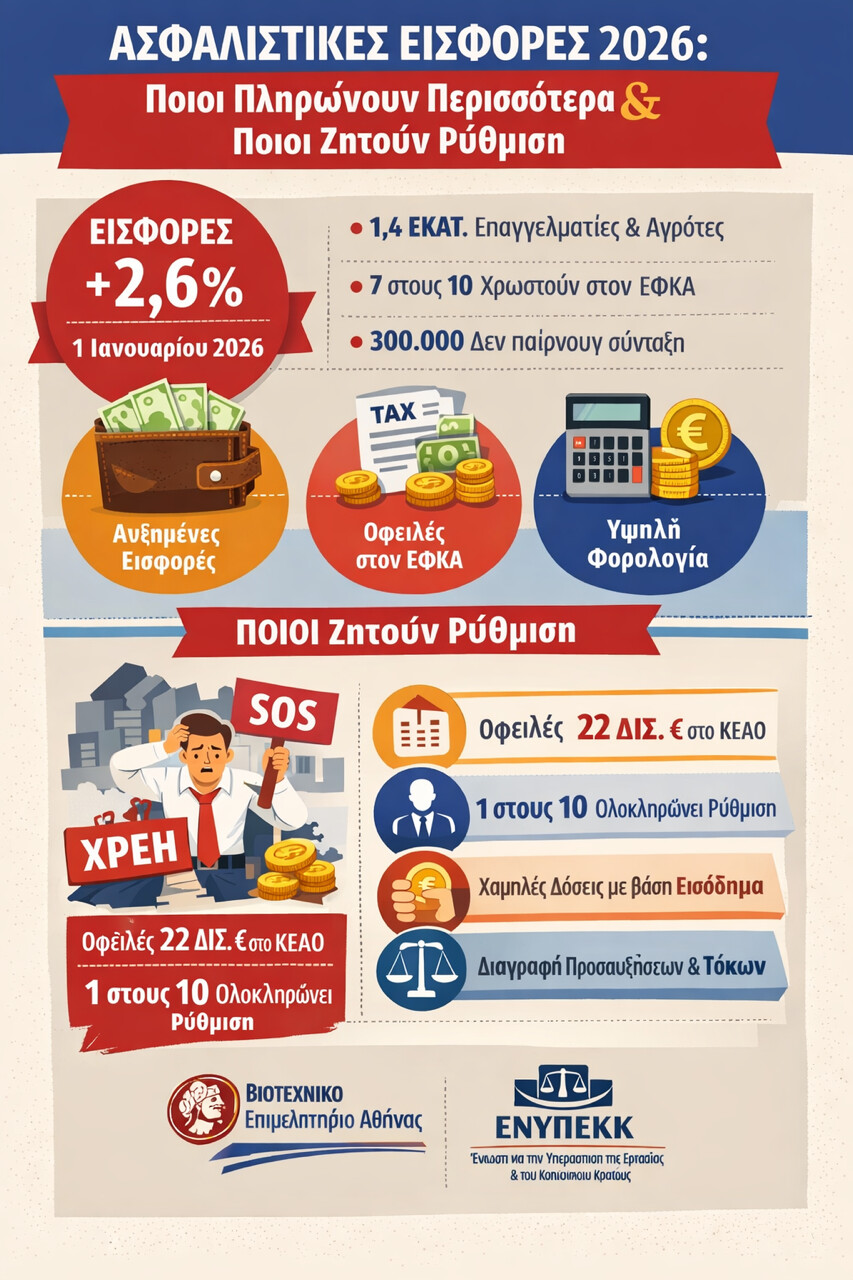 Η ΕΝΥΠΕΚΚ προειδοποιεί ότι εάν δεν ληφθούν διορθωτικά μέτρα, το 2026 θα είναι η χρονιά με το υψηλότερο ποσοστό απλήρωτων εισφορών της τελευταίας δεκαετίας.