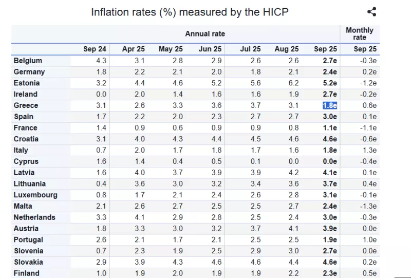 Η Ελλάδα κατέγραψε τον τρίτο χαμηλότερο πληθωρισμό τον Σεπτέμβριο, πίσω μόνο από την Κύπρο και τη Γαλλία.