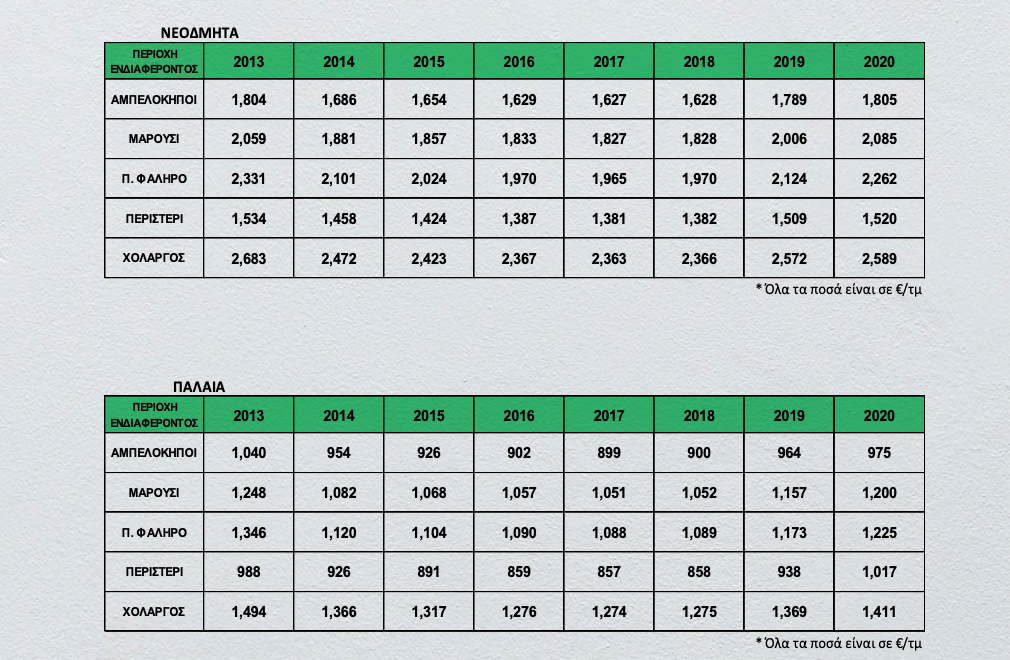 Τα στοιχεία προέρχονται από το τελευταίο Παρατηρητήριο Τιμών της γνωστής εταιρείας συμβούλων Geoaxis, η οποία σημειώνει ως γενικότερο συμπέρασμα την αξιοσημείωτη ανθεκτικότητα της συγκεκριμένης αγοράς στον COVID-19.