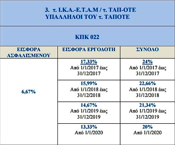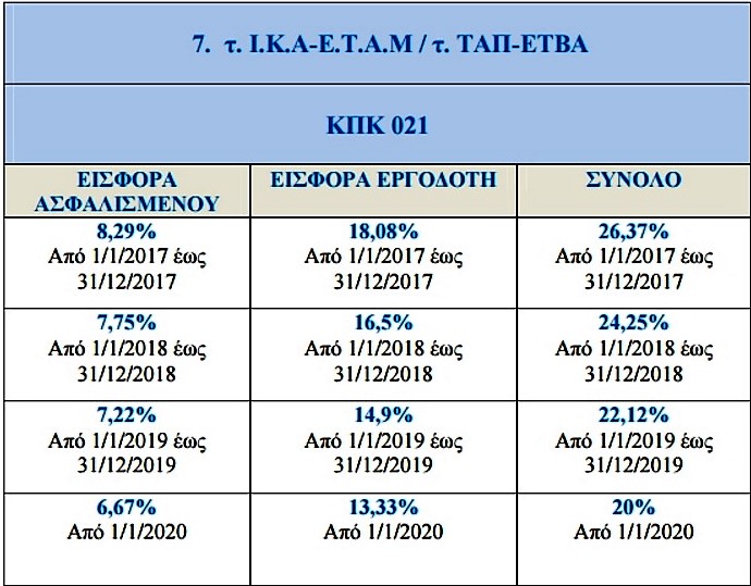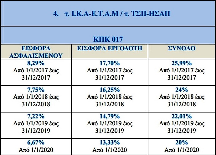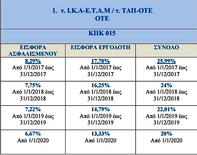 Από 01/01/2017, τα ποσοστά των ασφαλιστικών εισφορών κλάδου σύνταξης αναπροσαρμόζονται, ως εξής:
