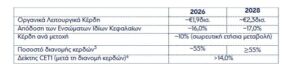 Οι χρηματοοικονομικοί στόχοι της περιόδου 2026-2028 έχουν ως εξής: